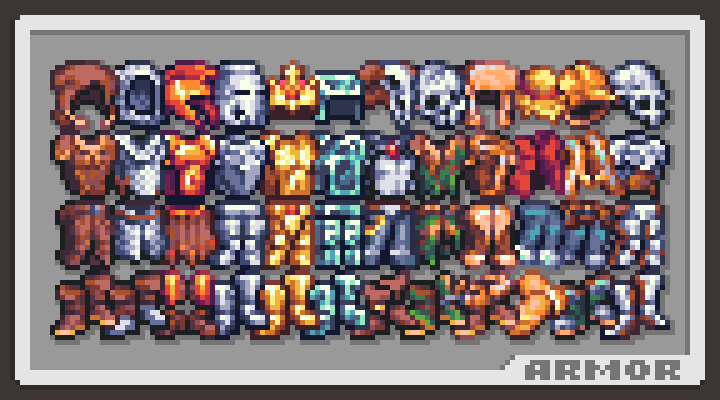 There is no exact list of “sprite-name” I didn't want to limit the authors who will use the pack to the exact name of the item, but rather give them the opportunity to understand what it is themselves.